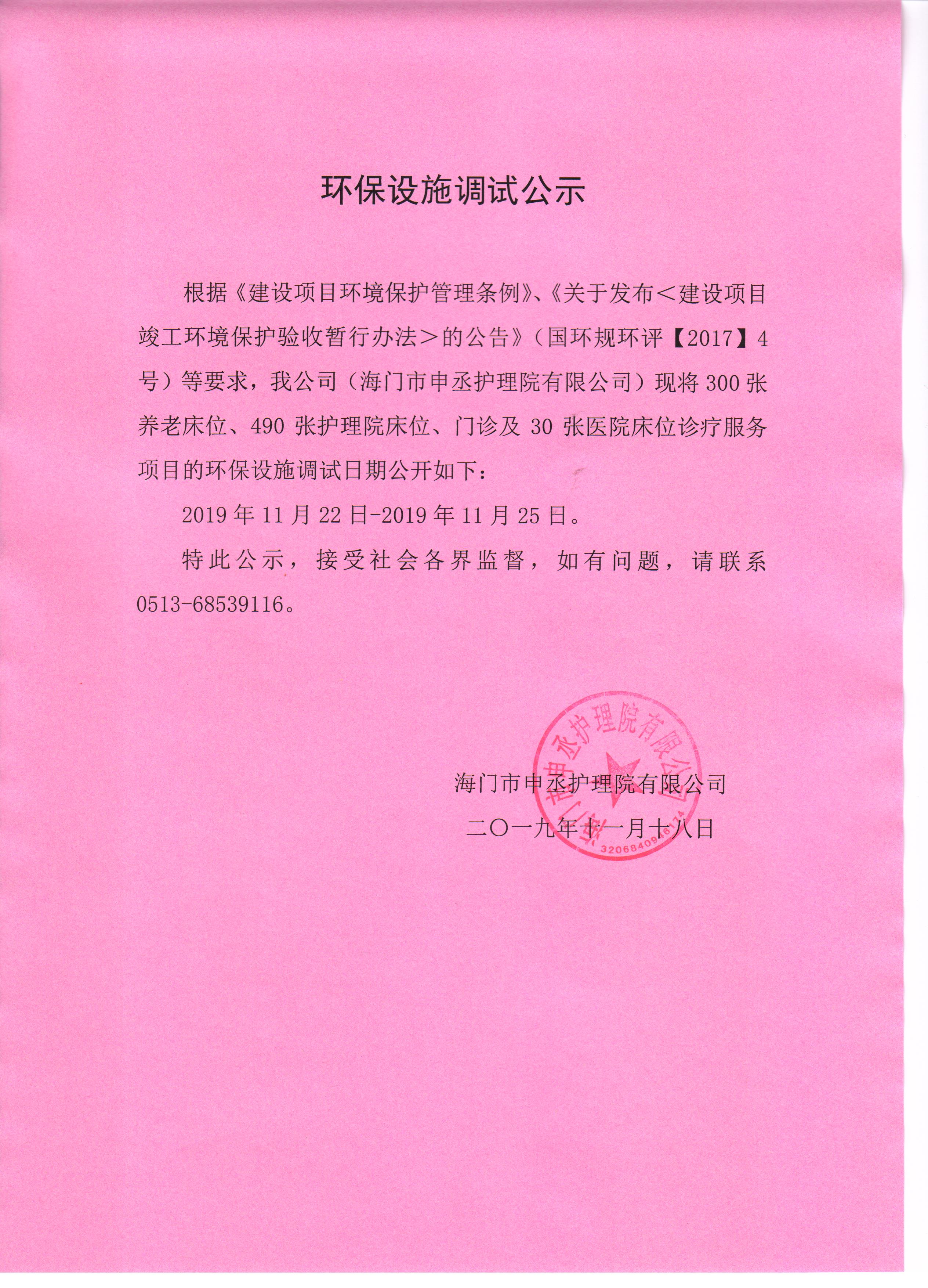 下一篇:海門市申丞護理院有限公司主體工程和所有配套的環(huán)保設施竣工公示