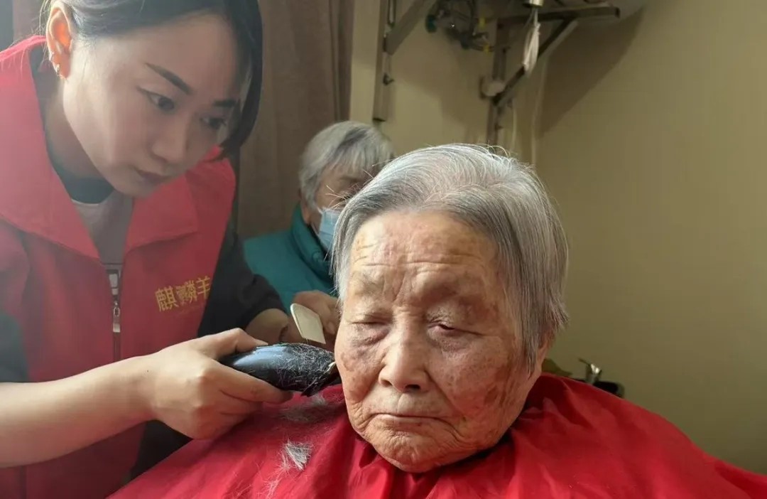 春節(jié)前夕,海門申丞護(hù)理院為在院的爺爺奶奶們安排了“過年三件套”——“美容美甲美發(fā)”,喜悅志愿者團隊特來院為爺爺奶奶們理發(fā)、扦腳,讓爺爺奶奶們神神氣氣、漂漂亮亮過大年。