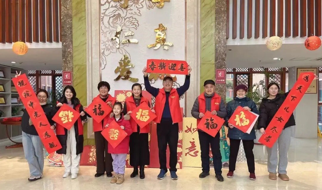 過年送福字、貼春聯(lián),紅紅的紙,濃濃的墨,滿滿的年味,這是屬于中國人獨有的迎春方式。海門申丞護(hù)理院特邀請老年大學(xué)和喜悅志愿者團隊來院為在院長者送福字、貼春聯(lián)。